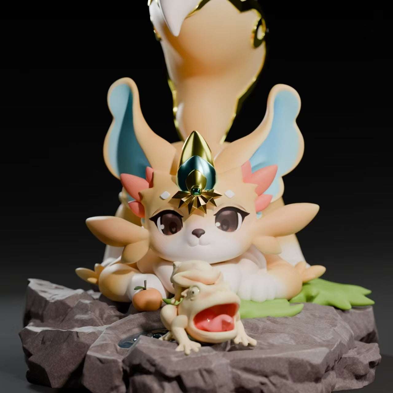 - One (1) themed base featuring a rock, water pool, and two frogs