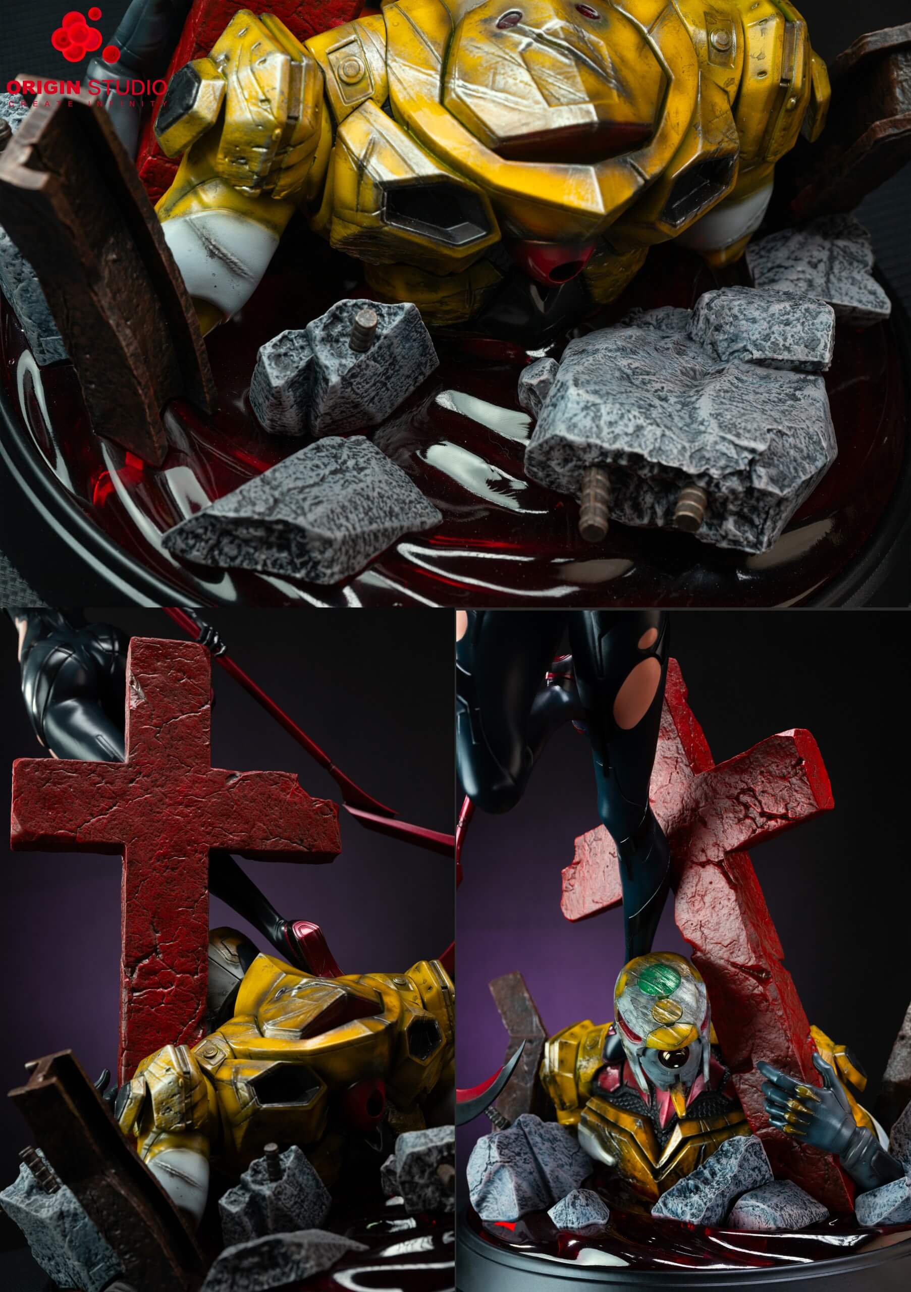 - One (1) dynamic diorama base featuring a collapsed EVA unit and crimson cross