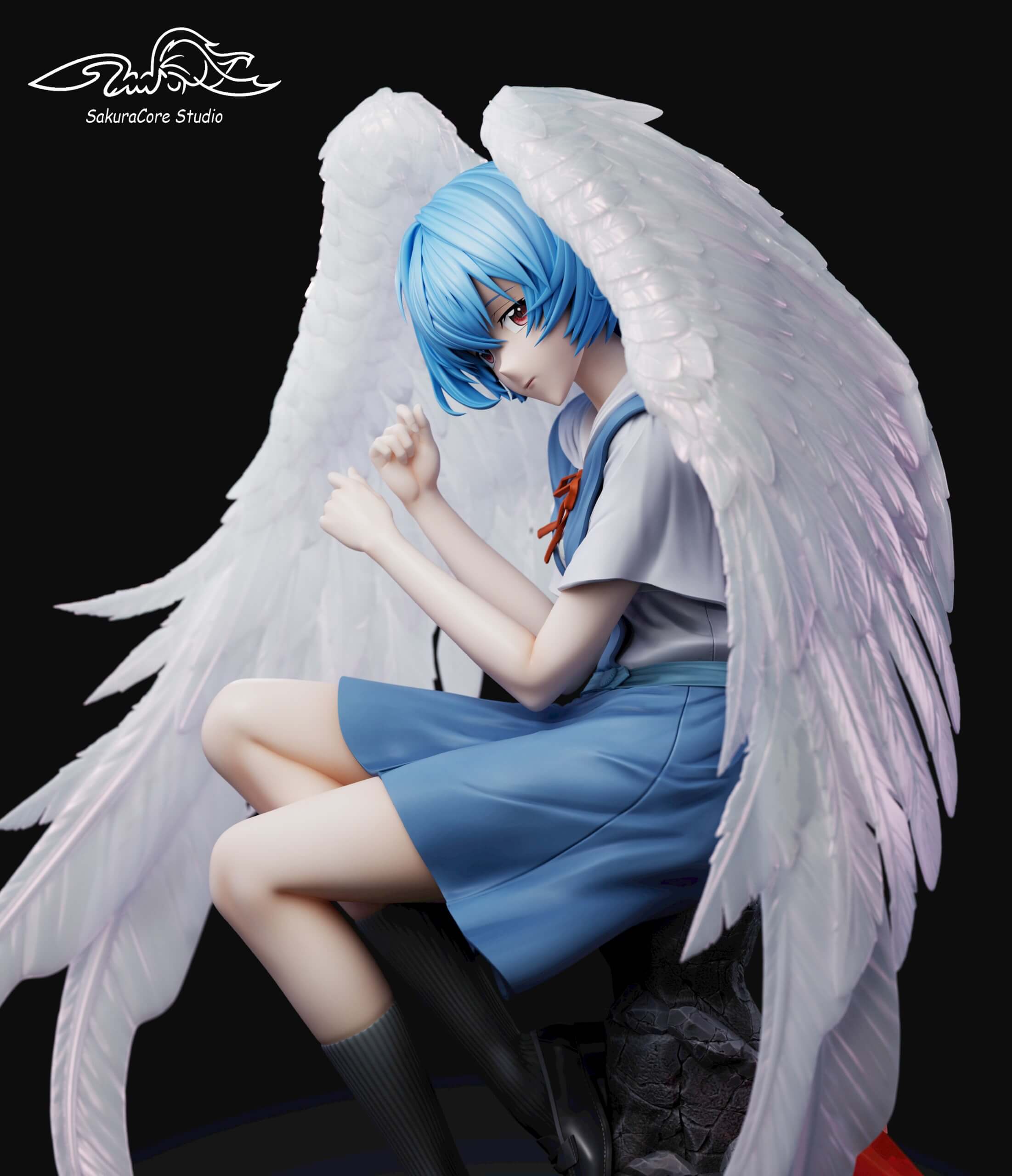 - School-Uniform Version: Features Rei in her blue Tokyo-3 school uniform with folded wings.