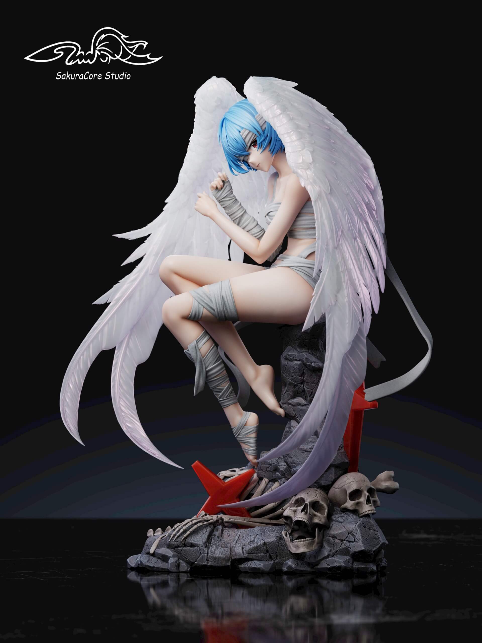 - Bandage Version: Features Rei in her battle-worn gray wrap attire with matching wings.