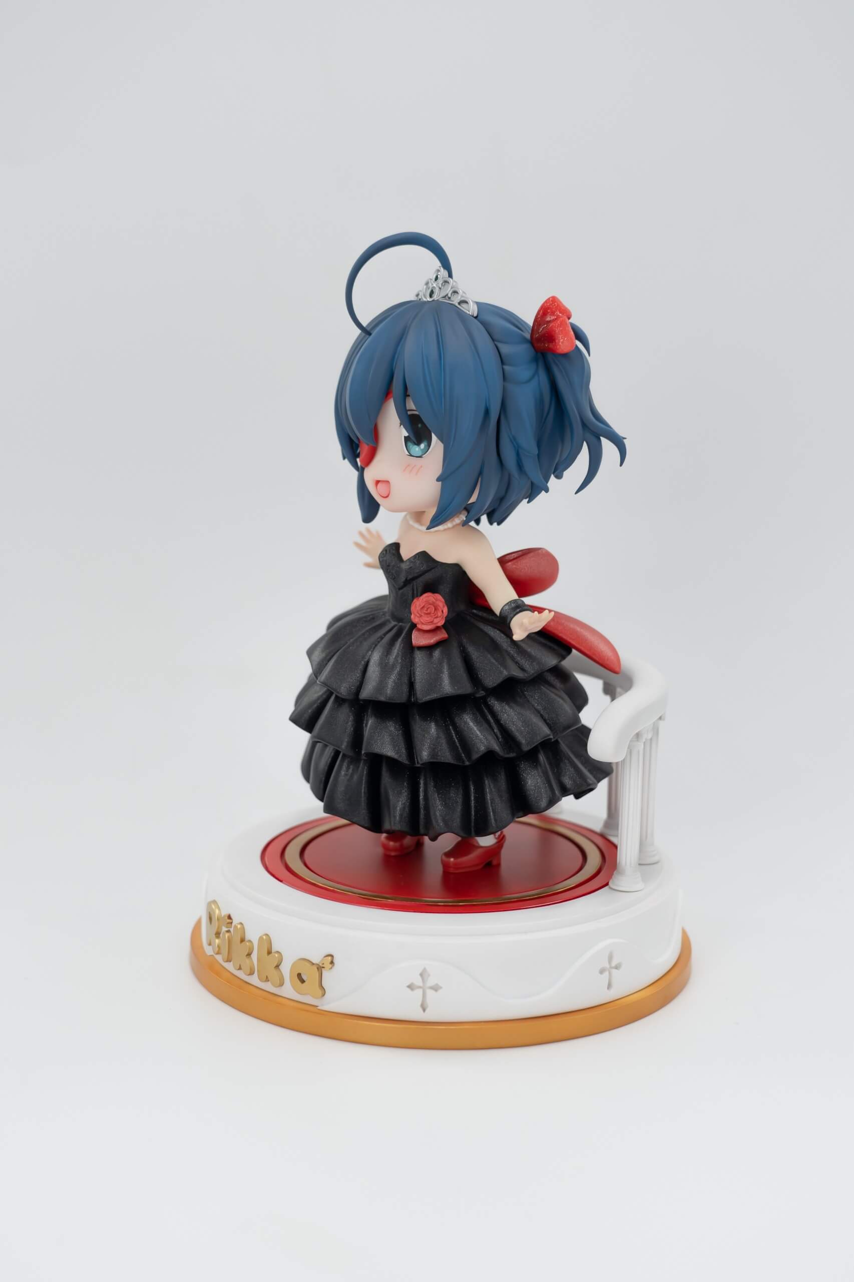 - Round display base with railing motif and a “Rikka” nameplate