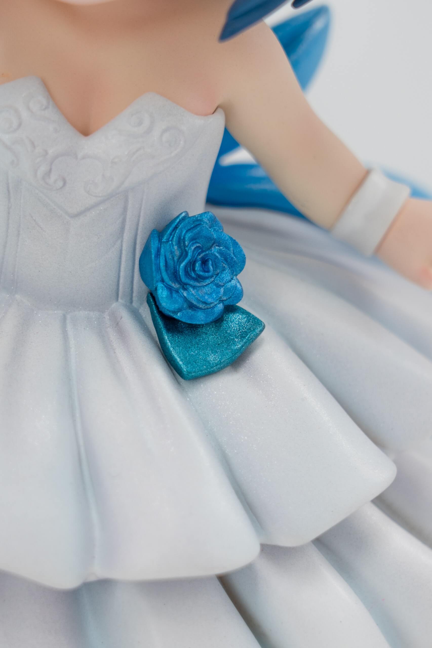 - Corsage accent: blue on the White version; red on the Black version