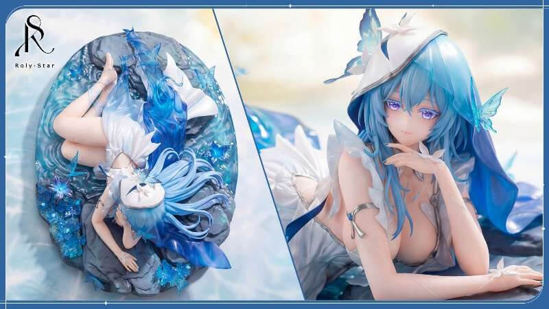 RolyStar Studio’s RS Shore Guardian captures a moment of tranquil vigil — a luminous figure reclining among crystalline rock and translucent blue butterflies, rendered in imported PU and resin at 1/6 scale. Every angle reveals layered translucency in the flora, delicate gradient work across her flowing hair, and a dreamy color harmony of cerulean and white that feels like holding still water in your hands. Limited to just 150 pieces worldwide.