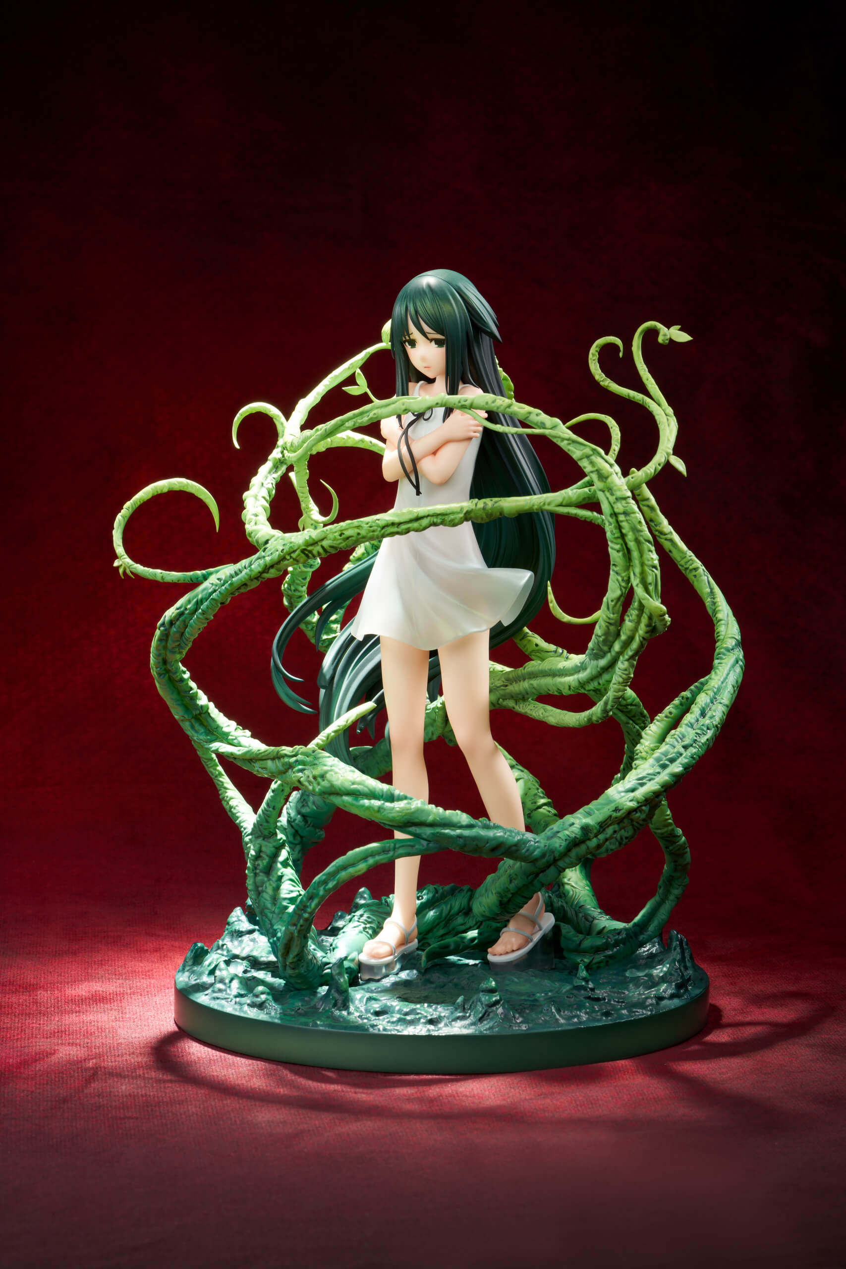 MAGI ARTS distills the unsettling beauty of Saya no Uta into a striking 1/6 scale piece. Saya stands barefoot in her delicate white dress, encircled by a wall of meticulously textured organic tendrils that twist upward from a dark, fleshy base โ€” innocence and cosmic horror occupying the same space. At 28 cm tall in PVC and ABS, this figure captures the visual novel’s central tension: the thing you cannot look away from, no matter what it truly is.