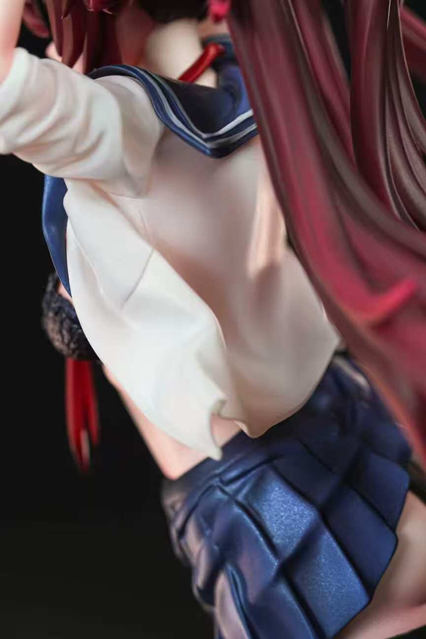 - Playful dual-figure composition featuring Hu Tao in a modified sailor-style school uniform