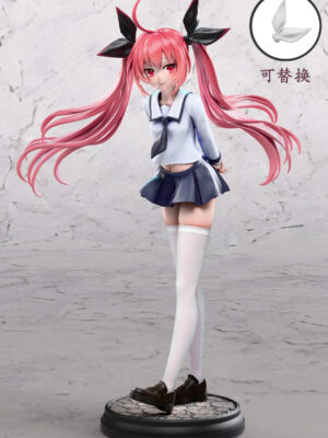 - Figure body — Kurumi perched atop a classroom desk with a playful, teasing posture