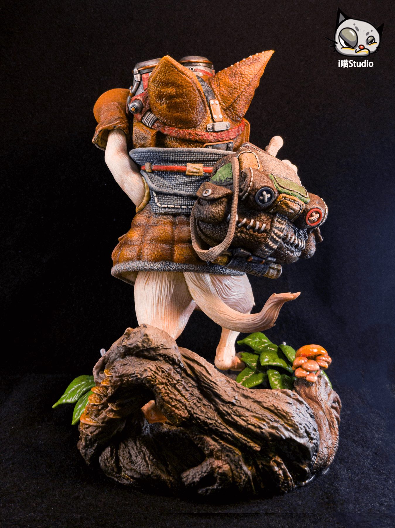 - Scout Palico in full leather field gear with goggles, cap, and gauntlets