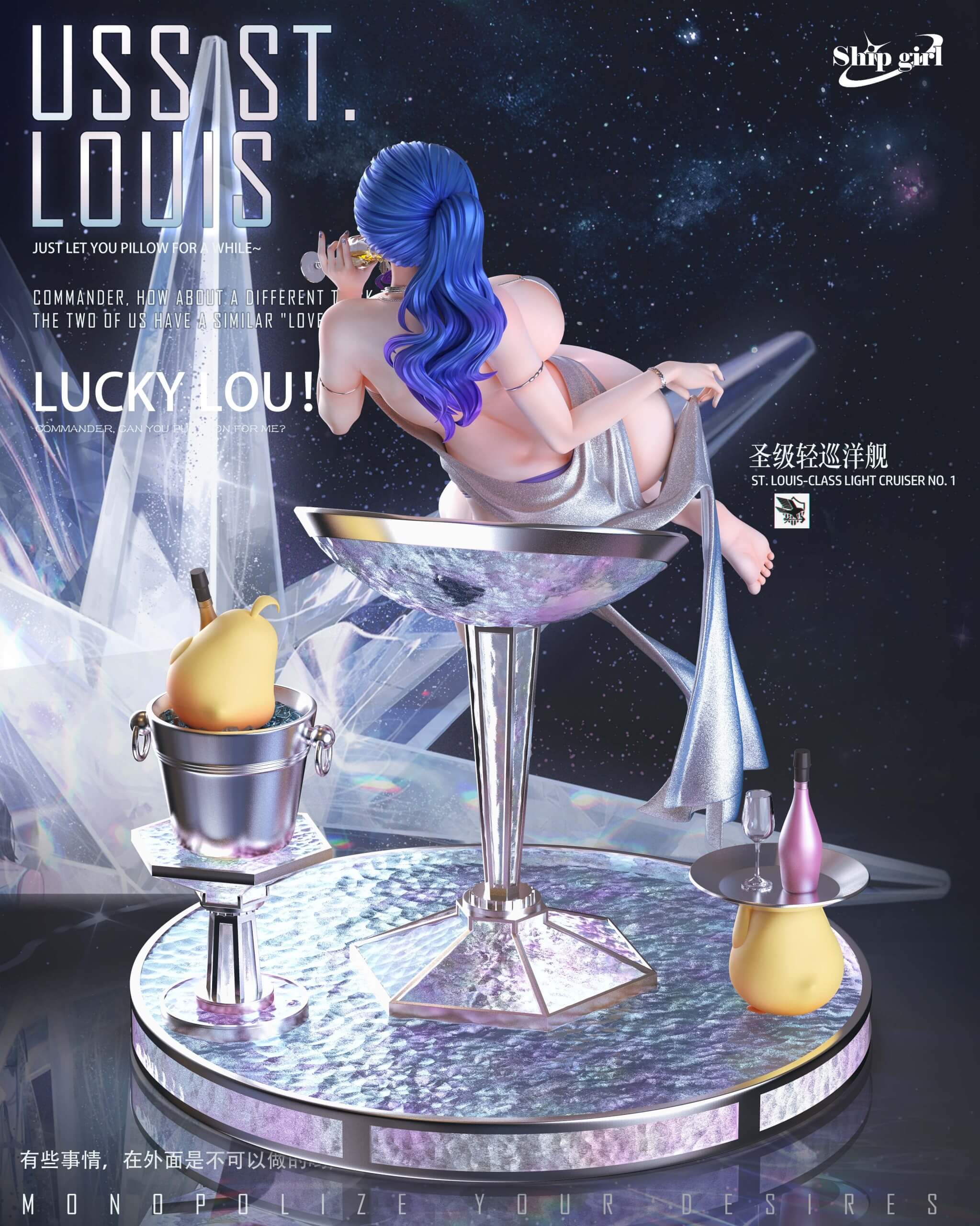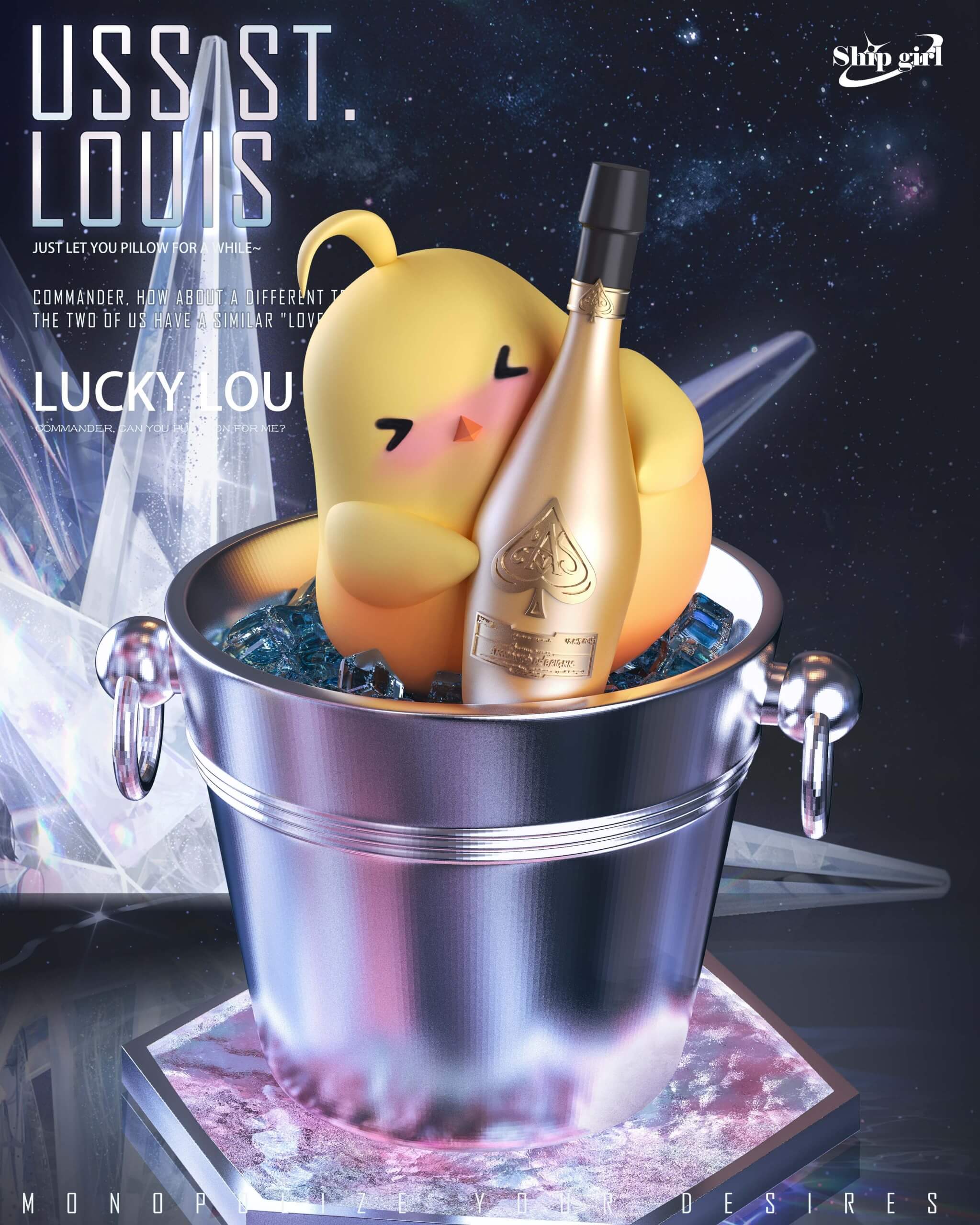 - Interchangeable accessory set: Manjuu ice bucket, Manjuu tray with champagne bottle & glass