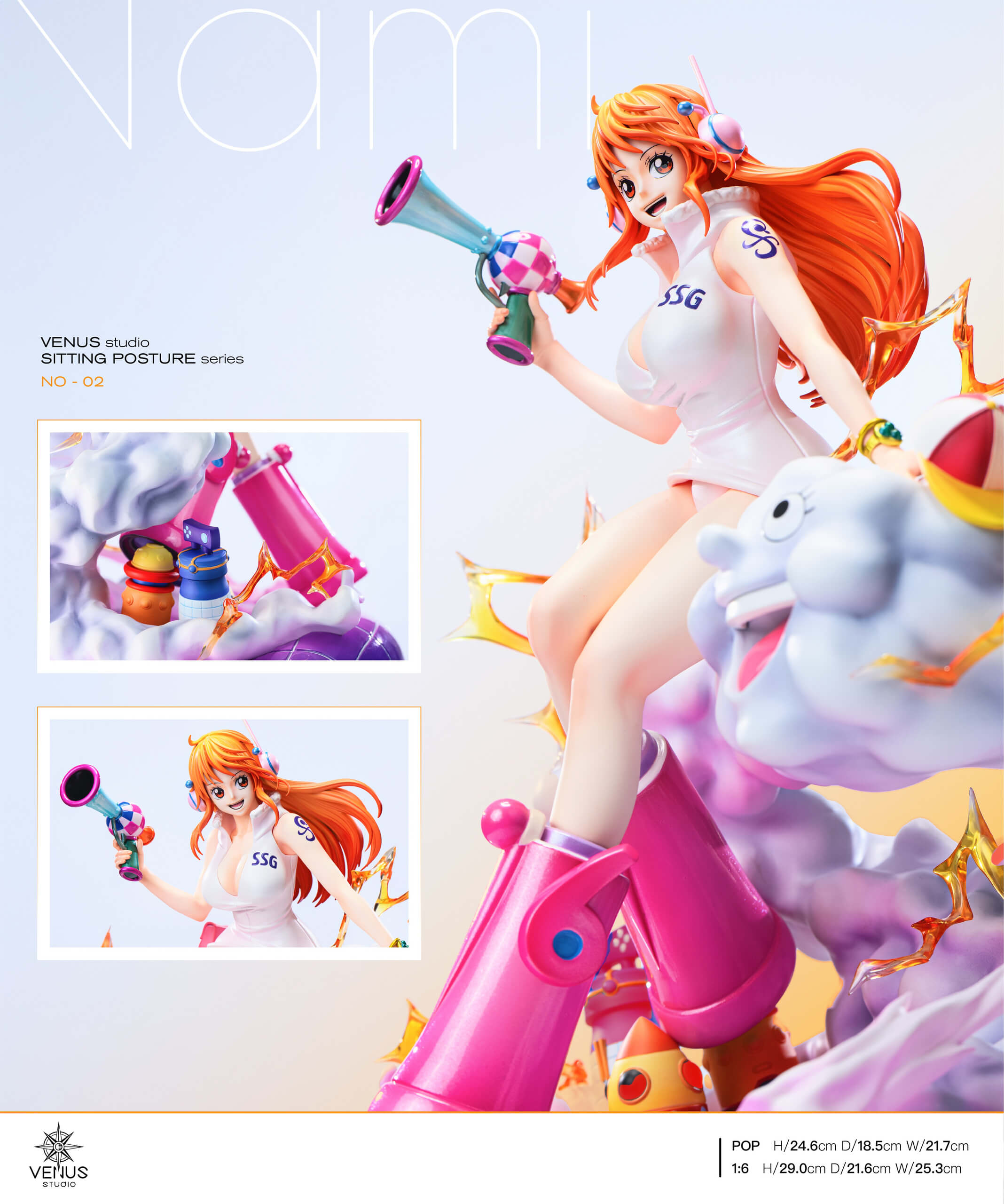 - Nami Character Sculpt: Features the “Egghead Arc” futuristic outfit with crisp “SSG” decal application and a vibrant, animated expression.