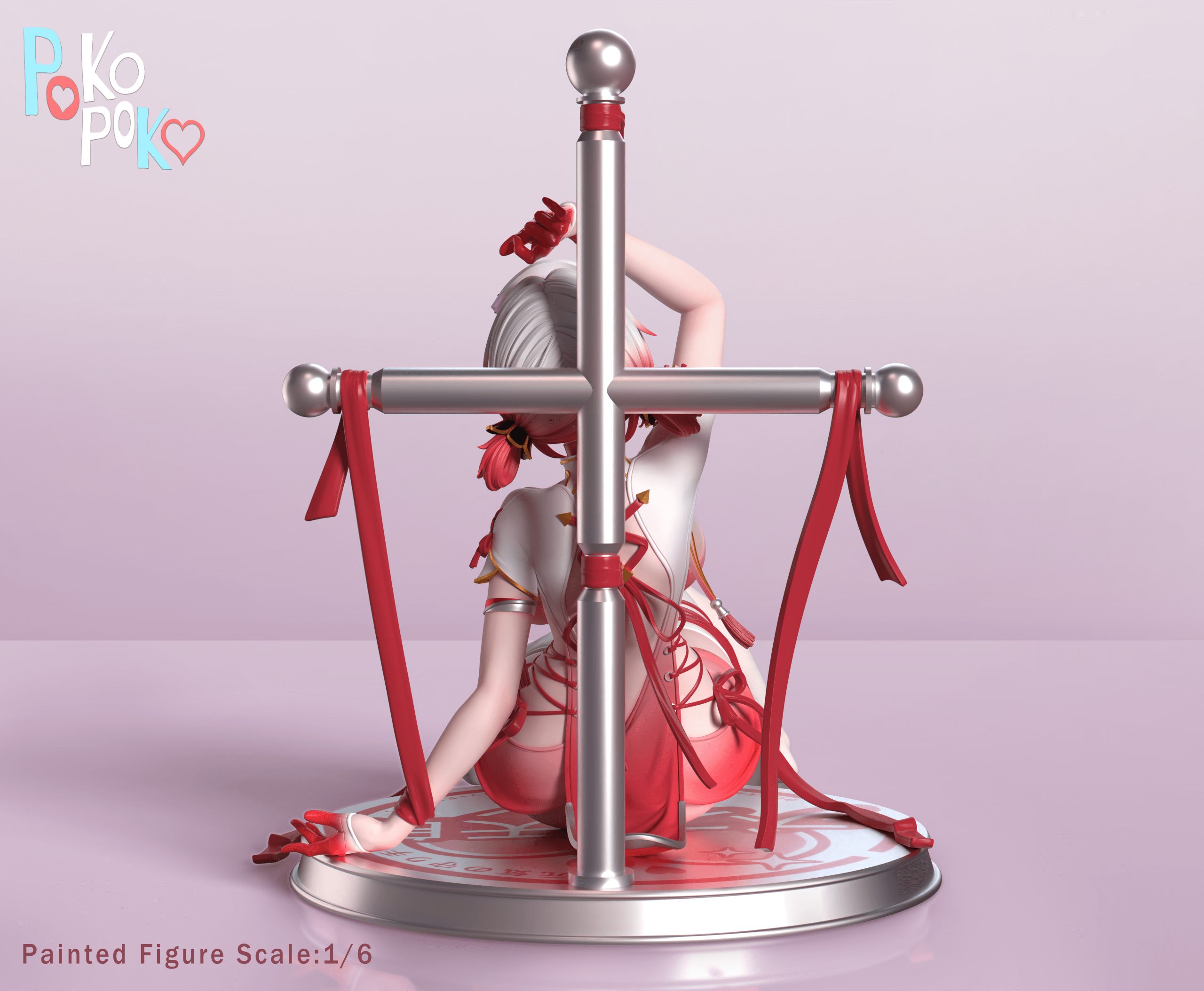 - Base is adorned with flowing red ribbons and a circular platform with nurse insignia