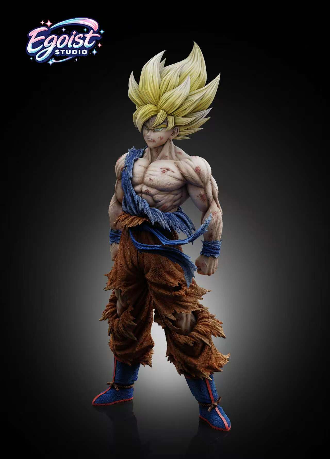 - Dynamic Super Saiyan hair sculpt with sharp, upward-flowing spikes and subtle gradients