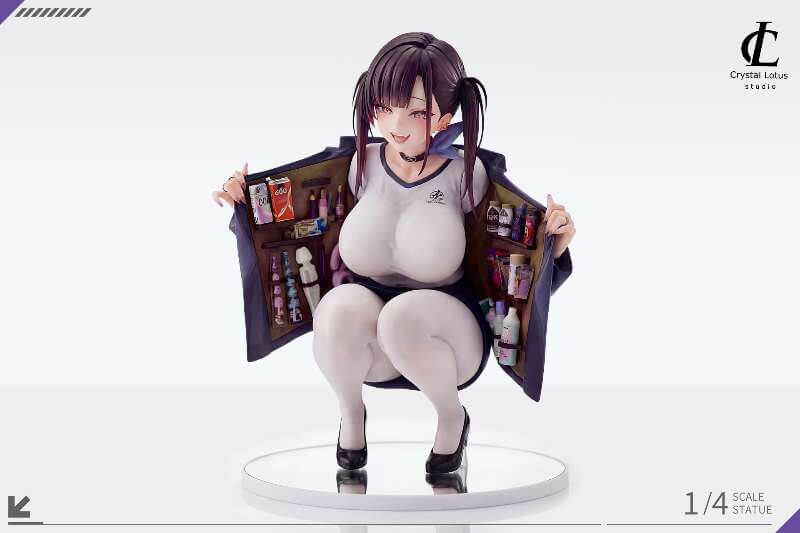 - Sora main figure โ crouching pose with jacket held open, revealing fully detailed interior lining stocked with miniature items across both panels