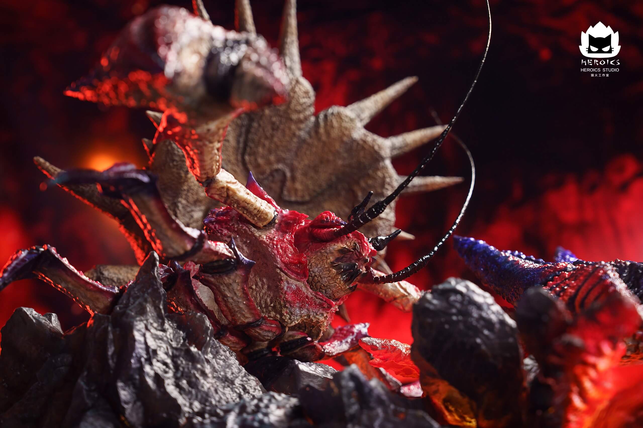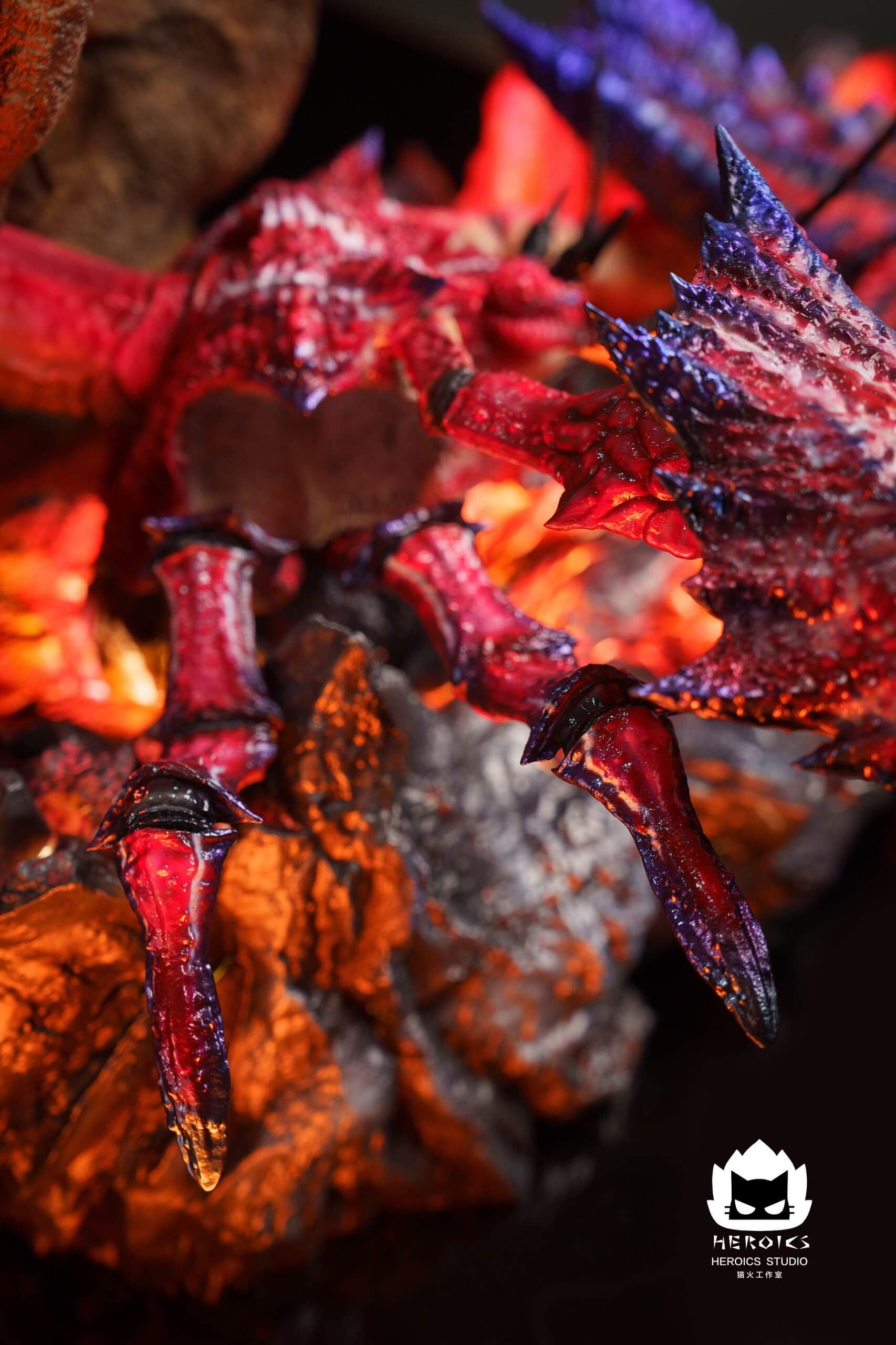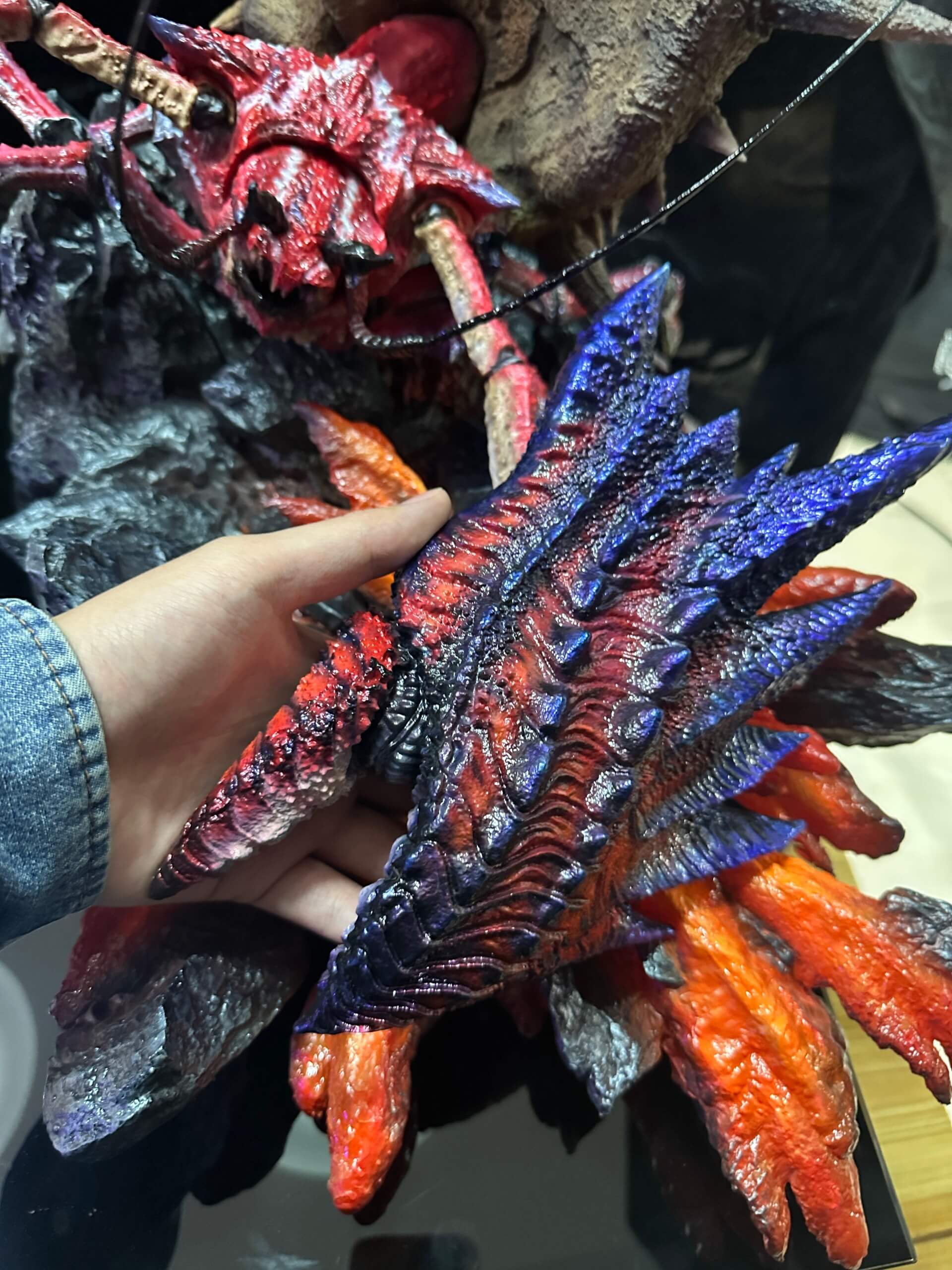 - Volcanic rock diorama sculpted for 360-degree display, capturing the monsterโs burrowing stance