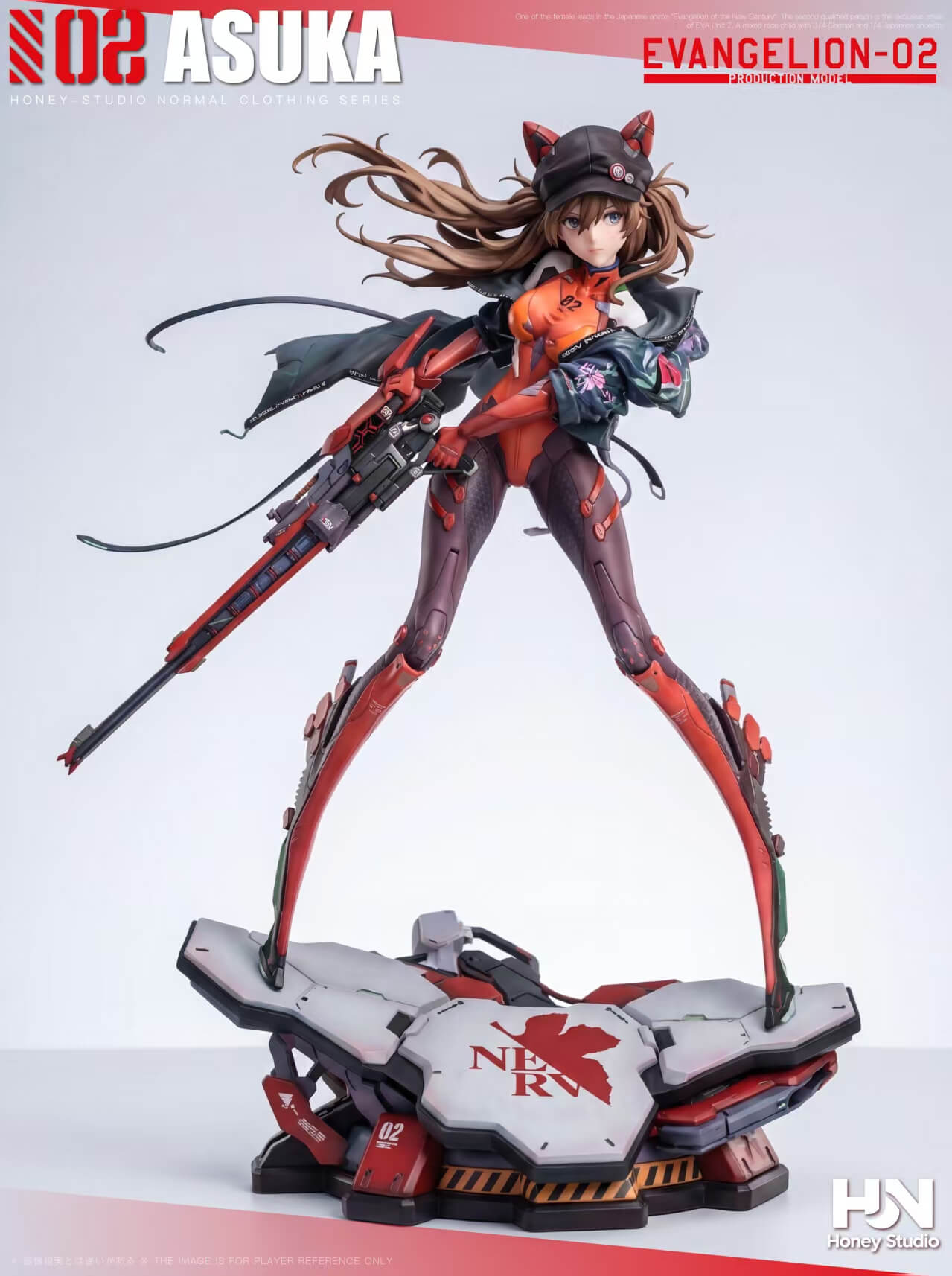 - NERV-branded armored base — multi-tiered platform with Unit-02 insignia, hazard striping, and technical panel detailing across the surface