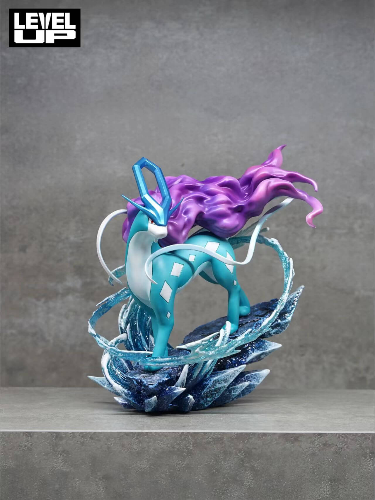 Level Up Studio’s Legendary Series Vol. 02 freezes Suicune in a surge of crystalline water, its voluminous purple mane swept back in full motion. At roughly 14 cm tall and limited to just 150 pieces, the sculpt wraps translucent wave elements around a compact, palm-sized base that punches well above its scale. A striking shelf centerpiece for any Johto-era devotee who never stopped chasing the north wind.