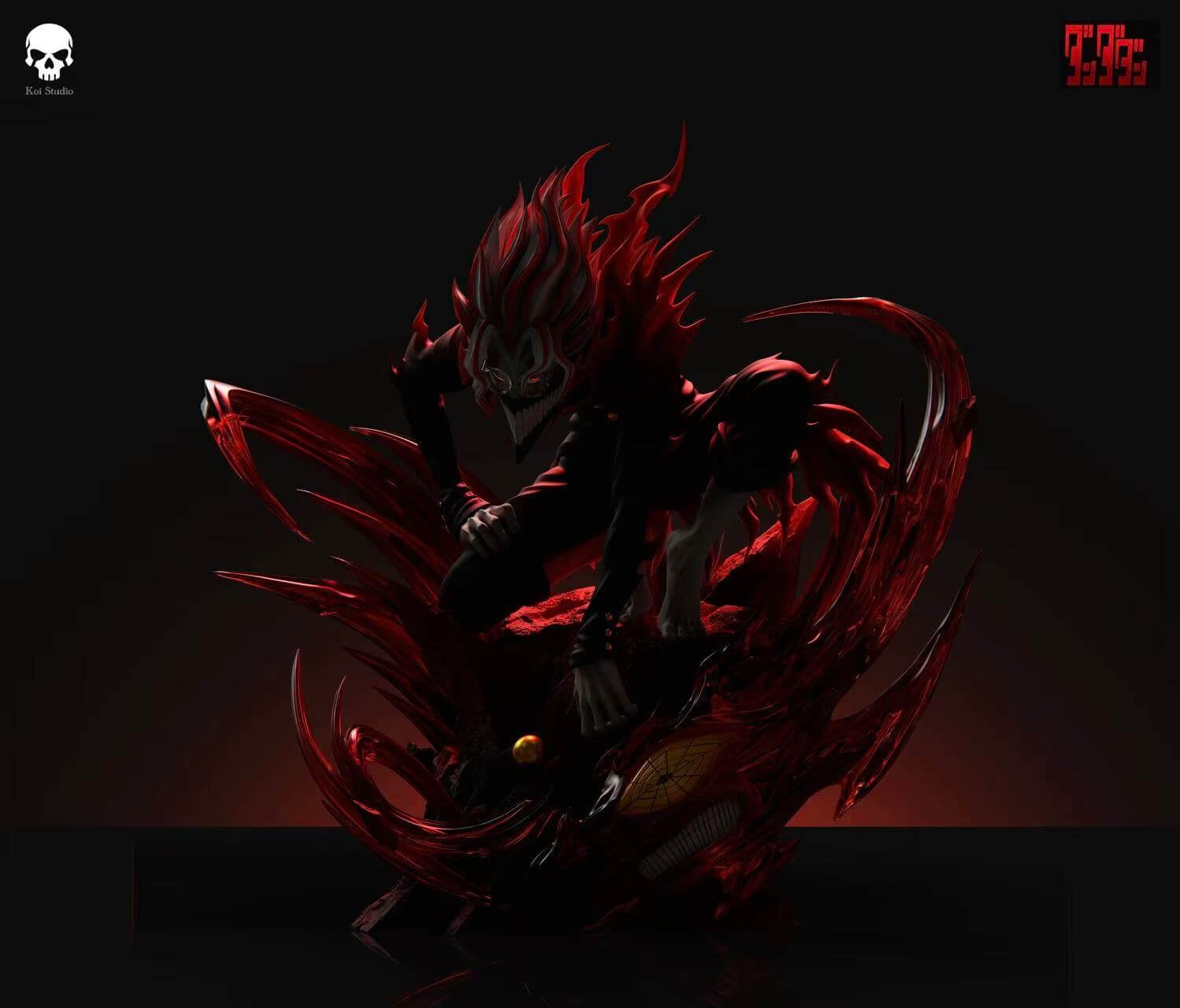 - Scene base โ fractured earth erupting into sweeping crimson energy blades that frame the figure from every angle, with Turbo Granny’s signature gold coin embedded at the front