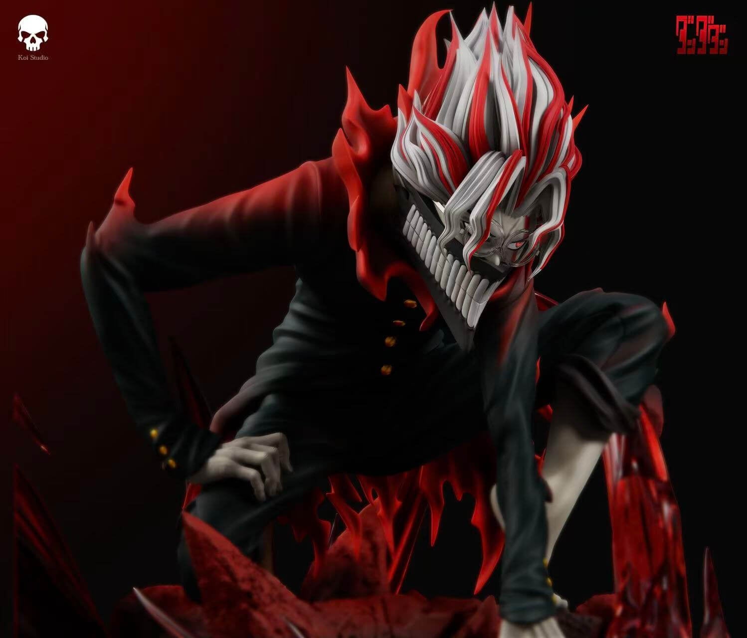 - Main figure โ Takakura Ken in full Turbo Granny possession form, crouched low and coiled with predatory tension across the sculpted scene base