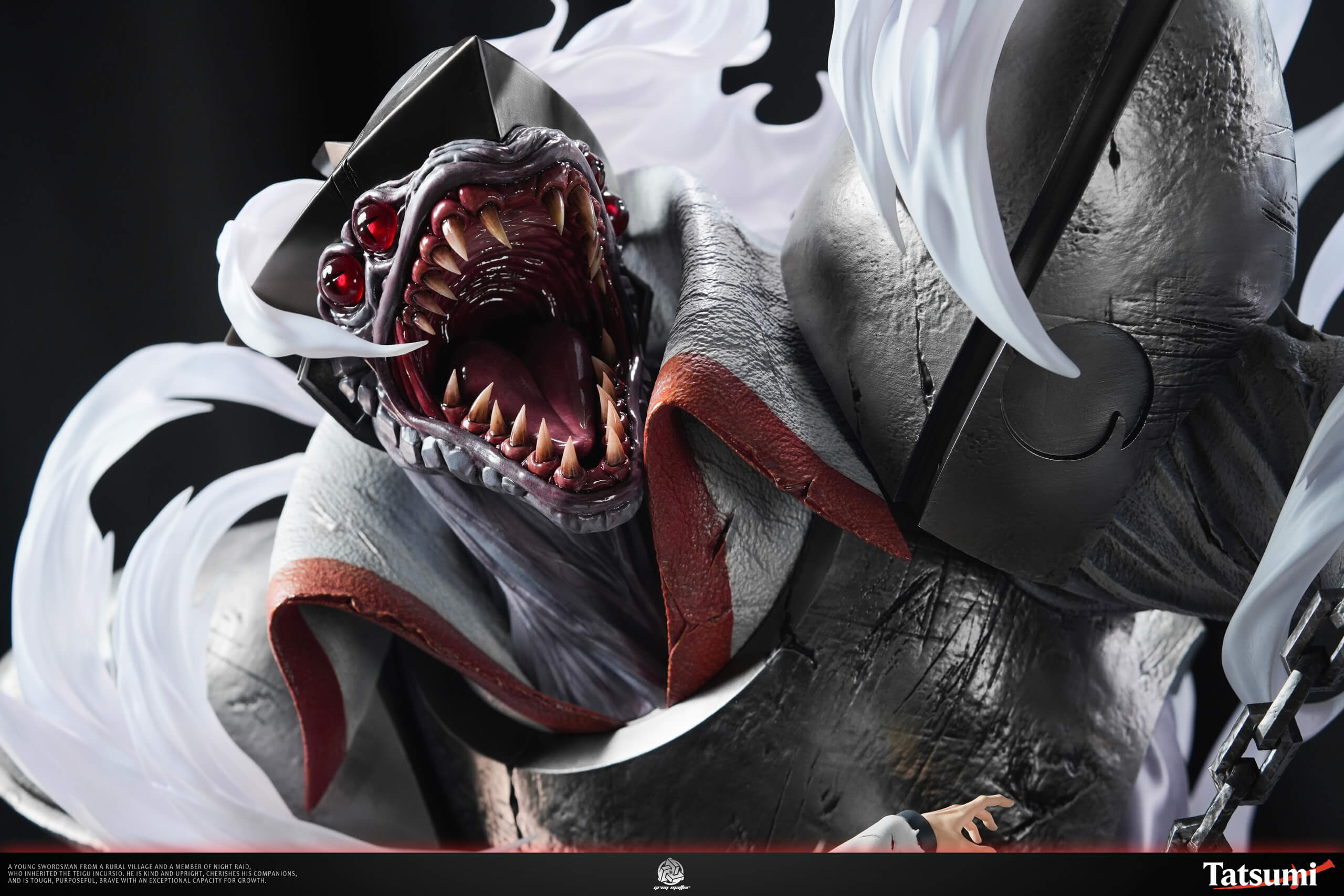 - Full scene base: Incursio armor looming as an enveloping presence behind the figure
