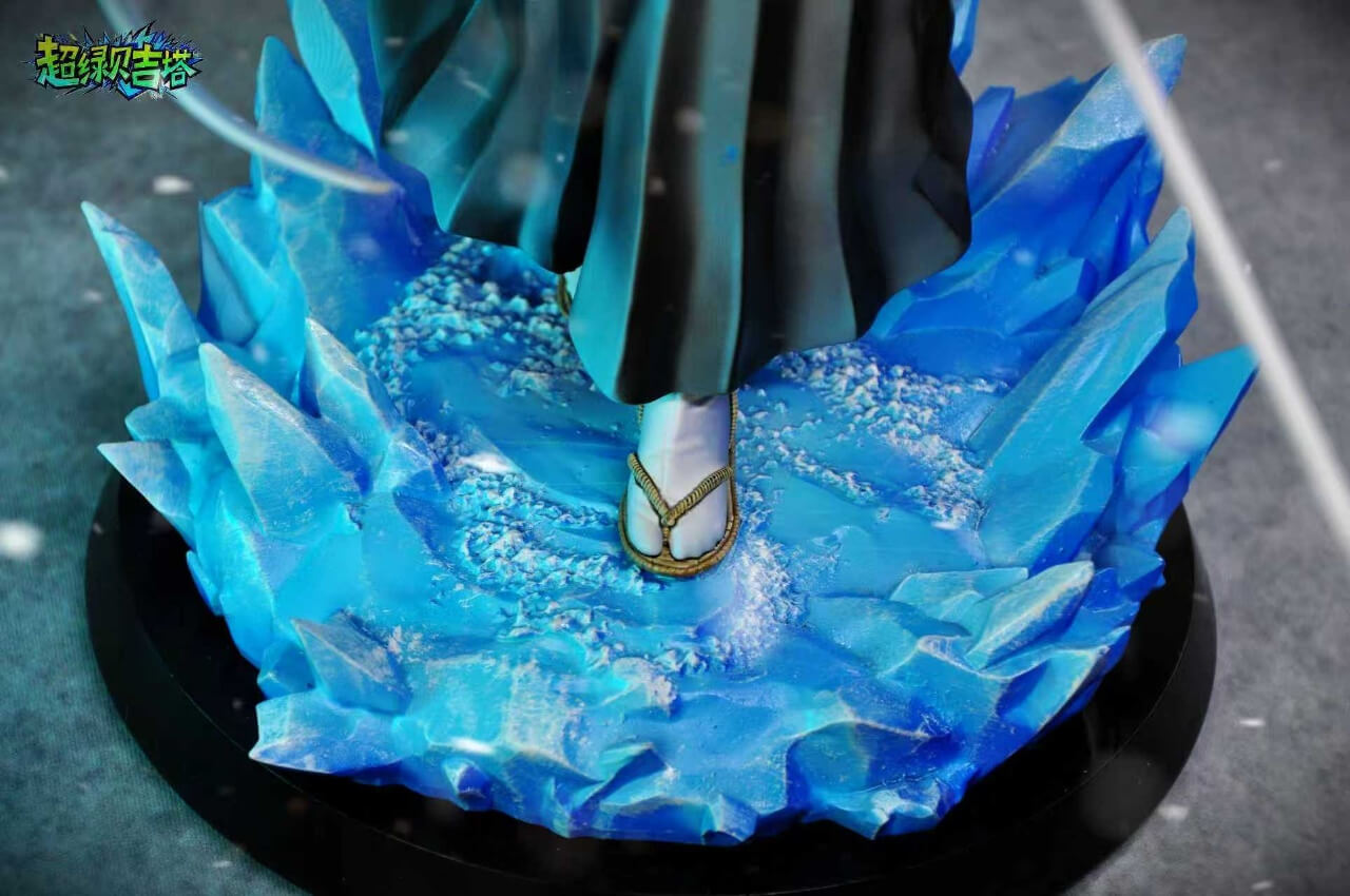 - Sculpted ice crystal base — translucent blue shards radiating outward beneath her zori sandals, with frosted snow texture across the surface; note: the black disc base has been removed from this version