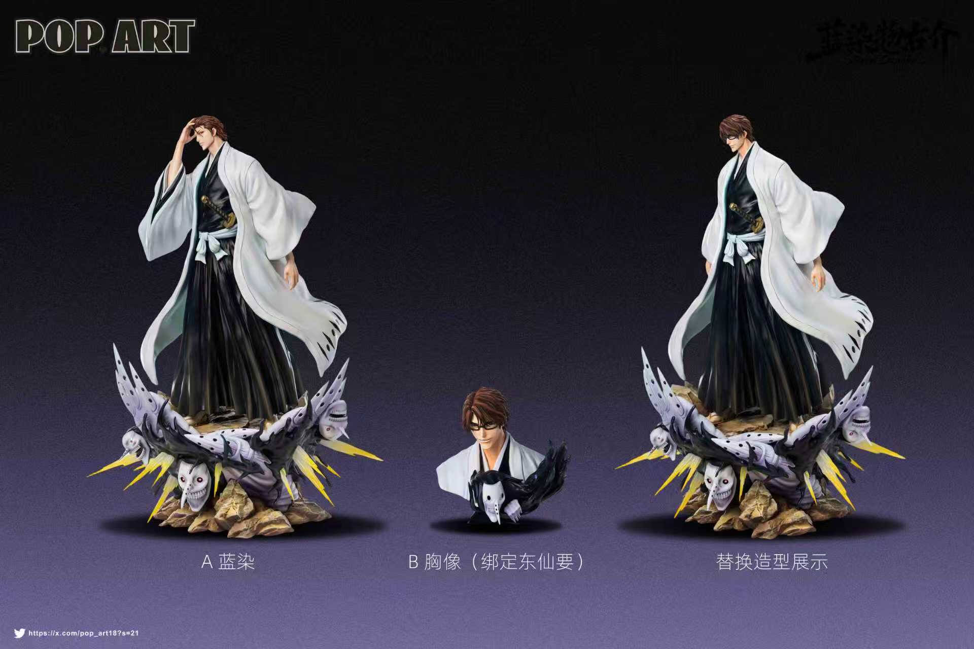 The bust (B) is not sold separately — it is bundled exclusively with the Three Kings: Kaname Tosen pre-order, which opens next month. Both items must be ordered together for the purchase to be confirmed.