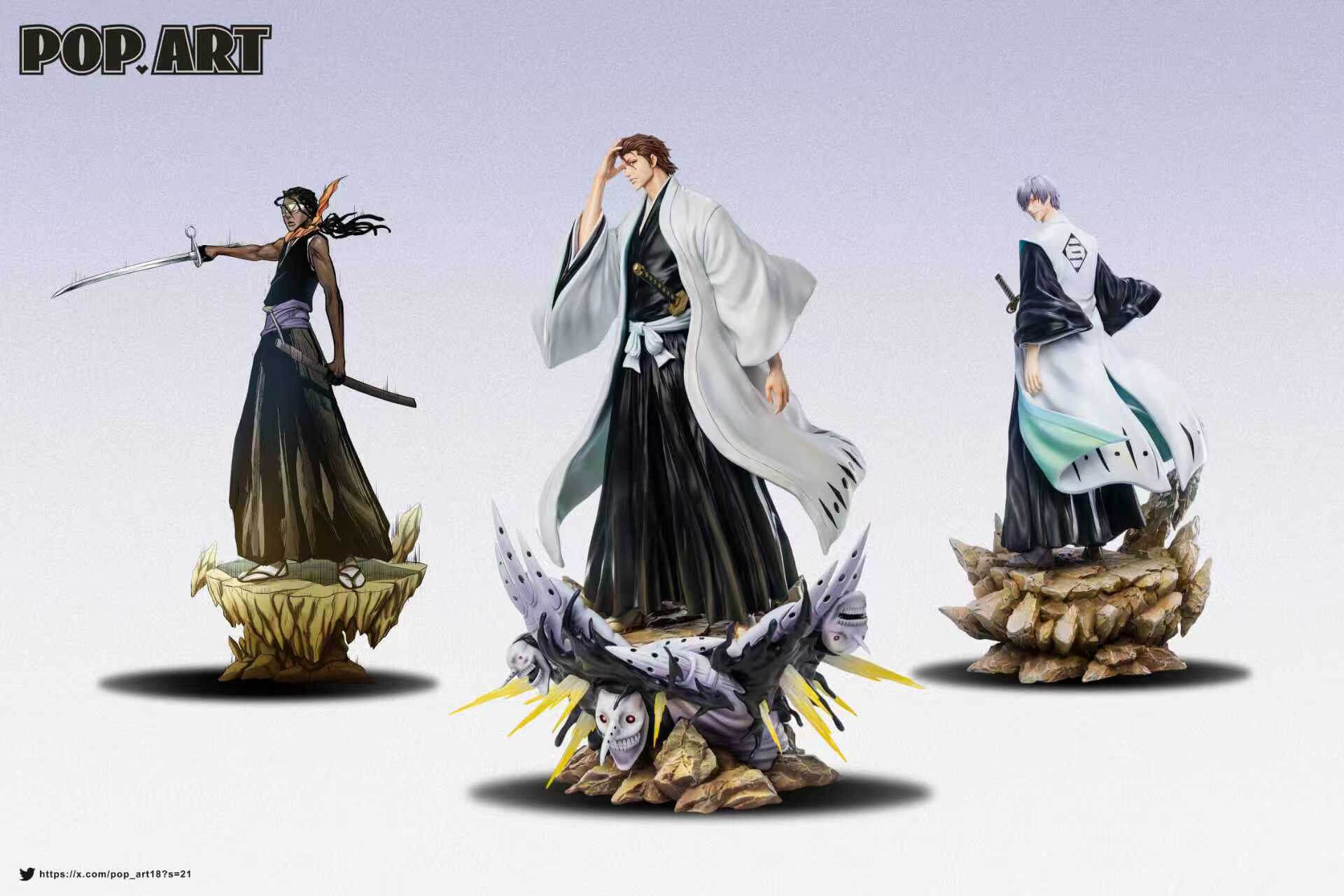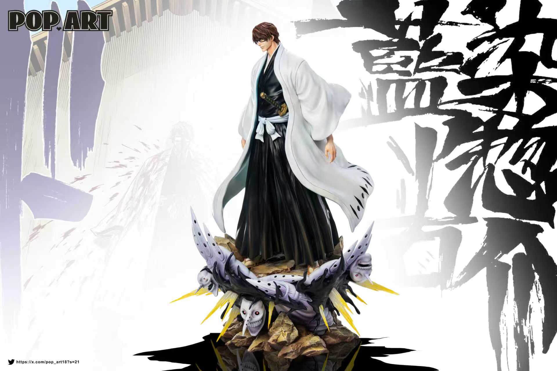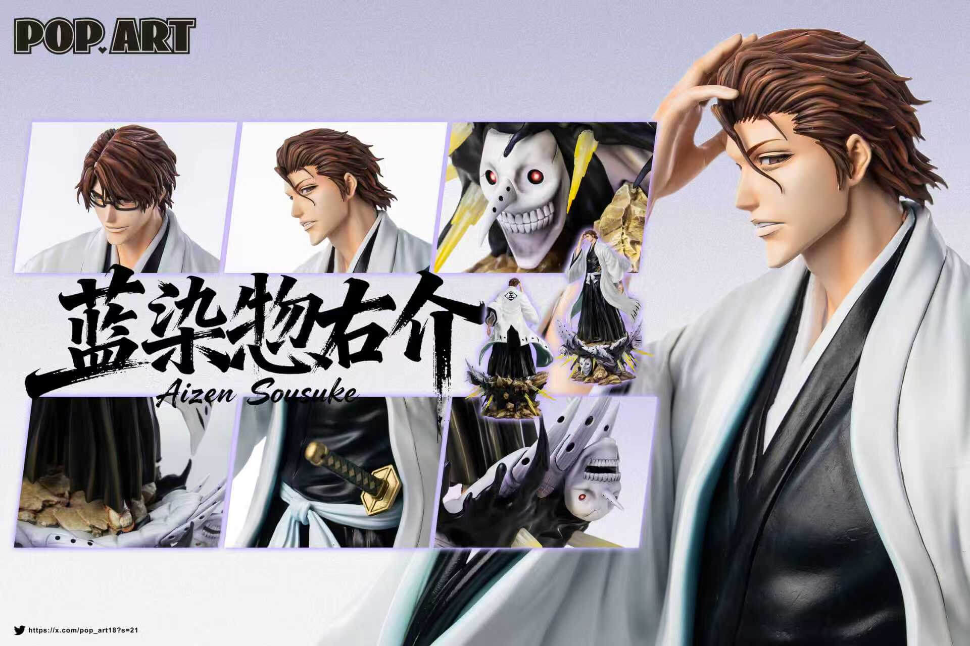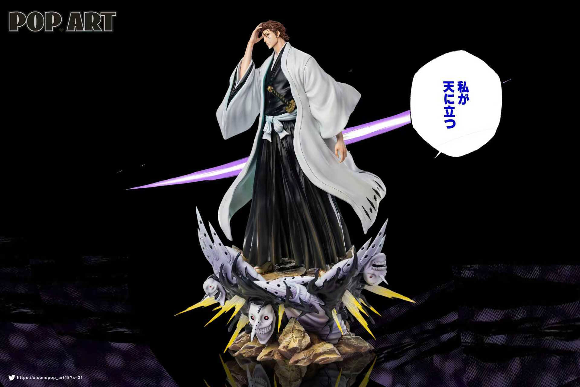 - Base: sculpted terrain base featuring Hollow-form figures emerging beneath Aizen’s feet, visible across multiple render angles
