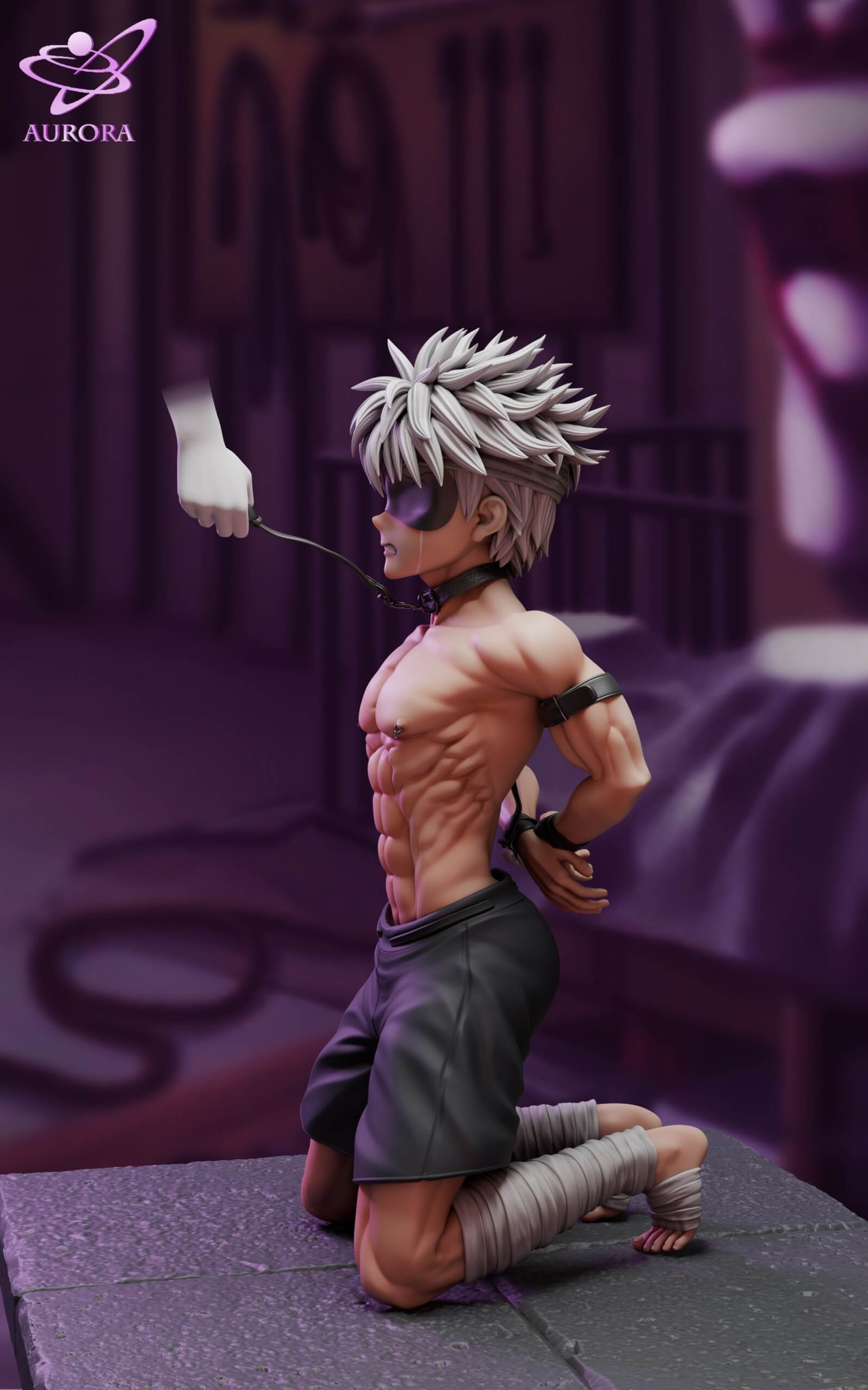 - Features Killua in a kneeling pose with his hands restrained behind his back.