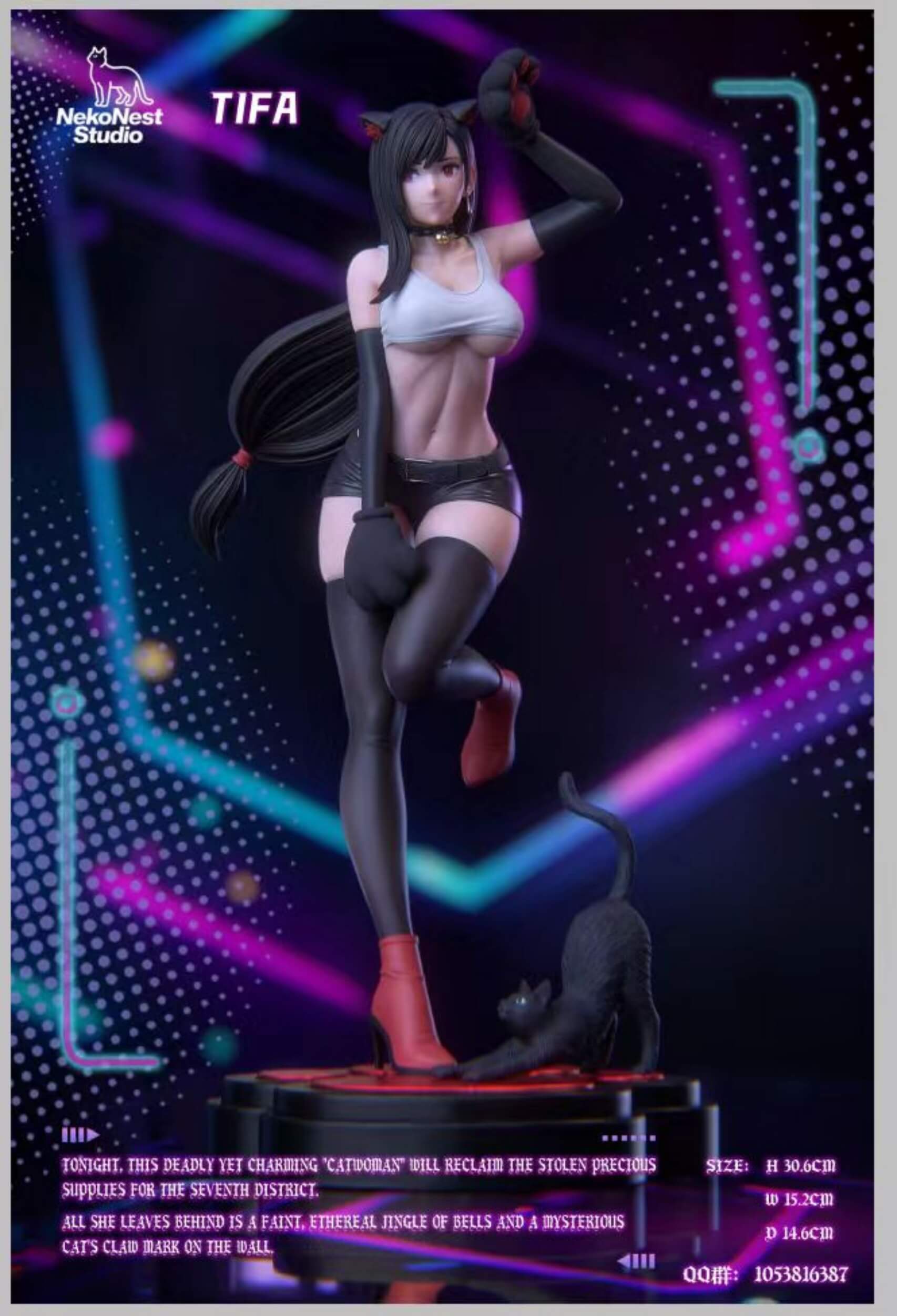 - 1/6-scale Tifa figure in cat-ear cosplay with bell collar and paw gloves