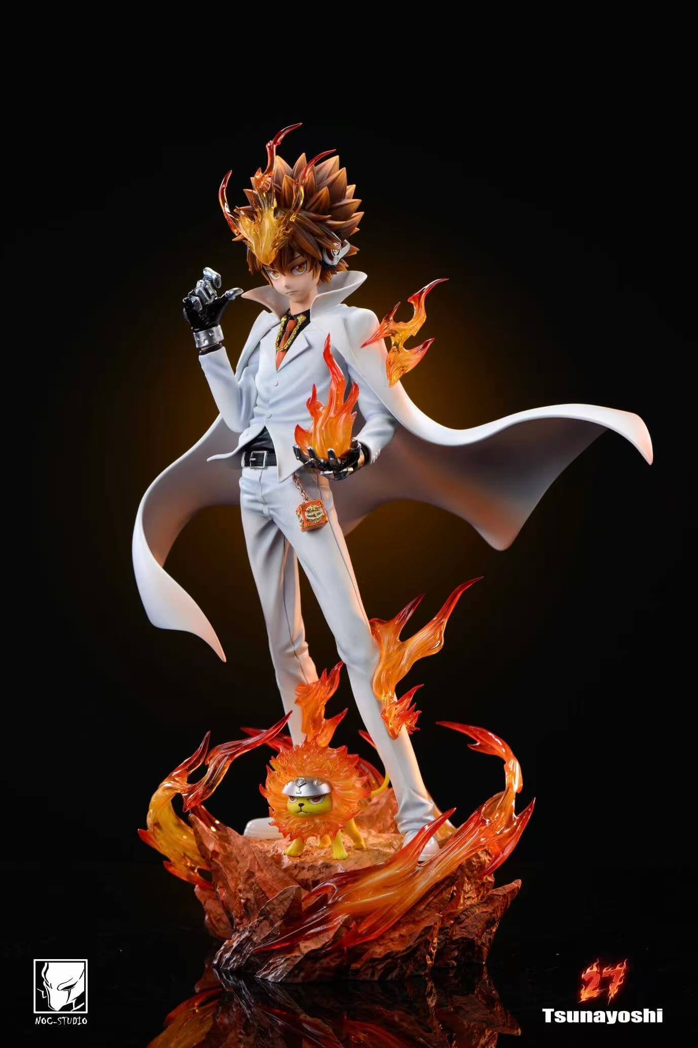 Noc Studio’s 2.0 rendition of Tsunayoshi Sawada presents the Vongola Decimo at full resolve — Hyper Dying Will Mode ignited, X-Gloves blazing, Natsu at his feet. High-transparency resin flame effects wrap the rocky base in vivid amber and crimson, catching light with real depth. Available in black or white suit at 1/6 scale (34 cm), with a detachable cape for flexible display. At just 168 pieces worldwide, this is a rare centerpiece for any Reborn! collection.