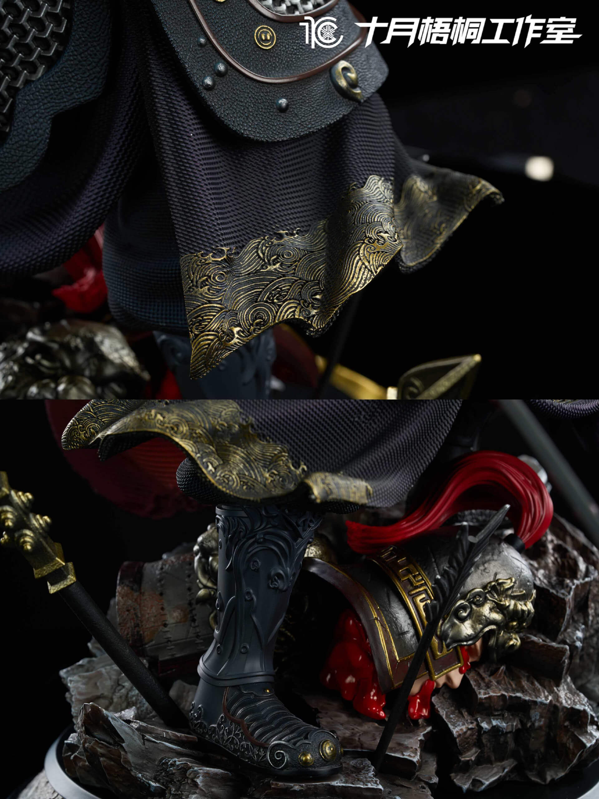 - Sculpted terrain base: fractured rock and debris ground, integrated with the figure’s stance