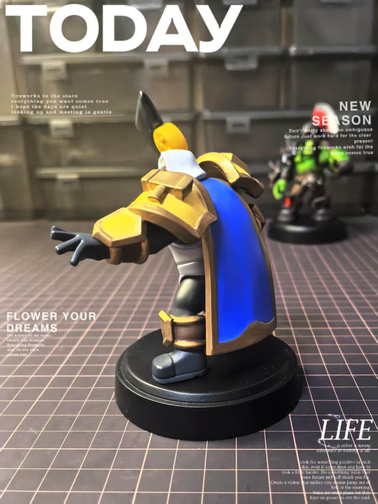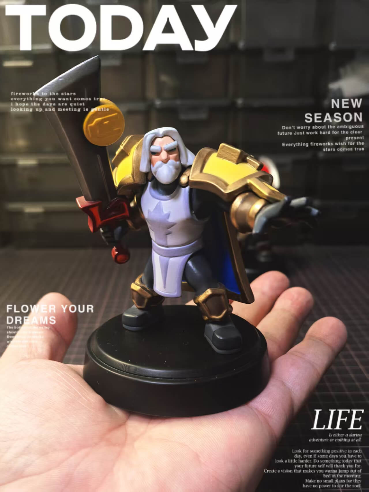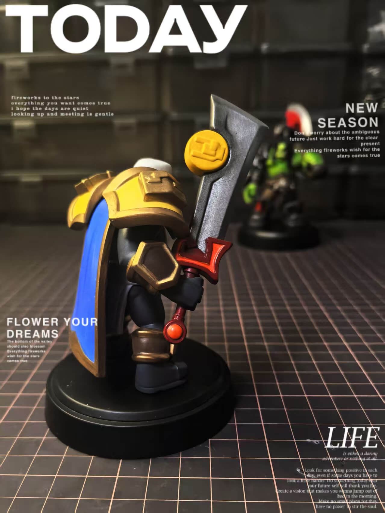 - Oversized claymore sculpted with a bold red crossguard and a glowing coin-like emblem at the pommel — immediately recognizable to any WoW veteran