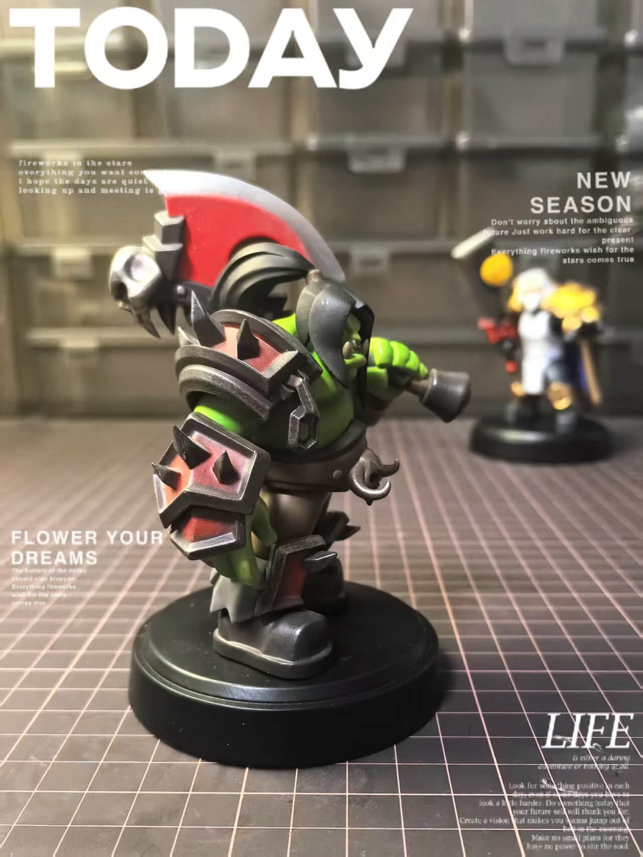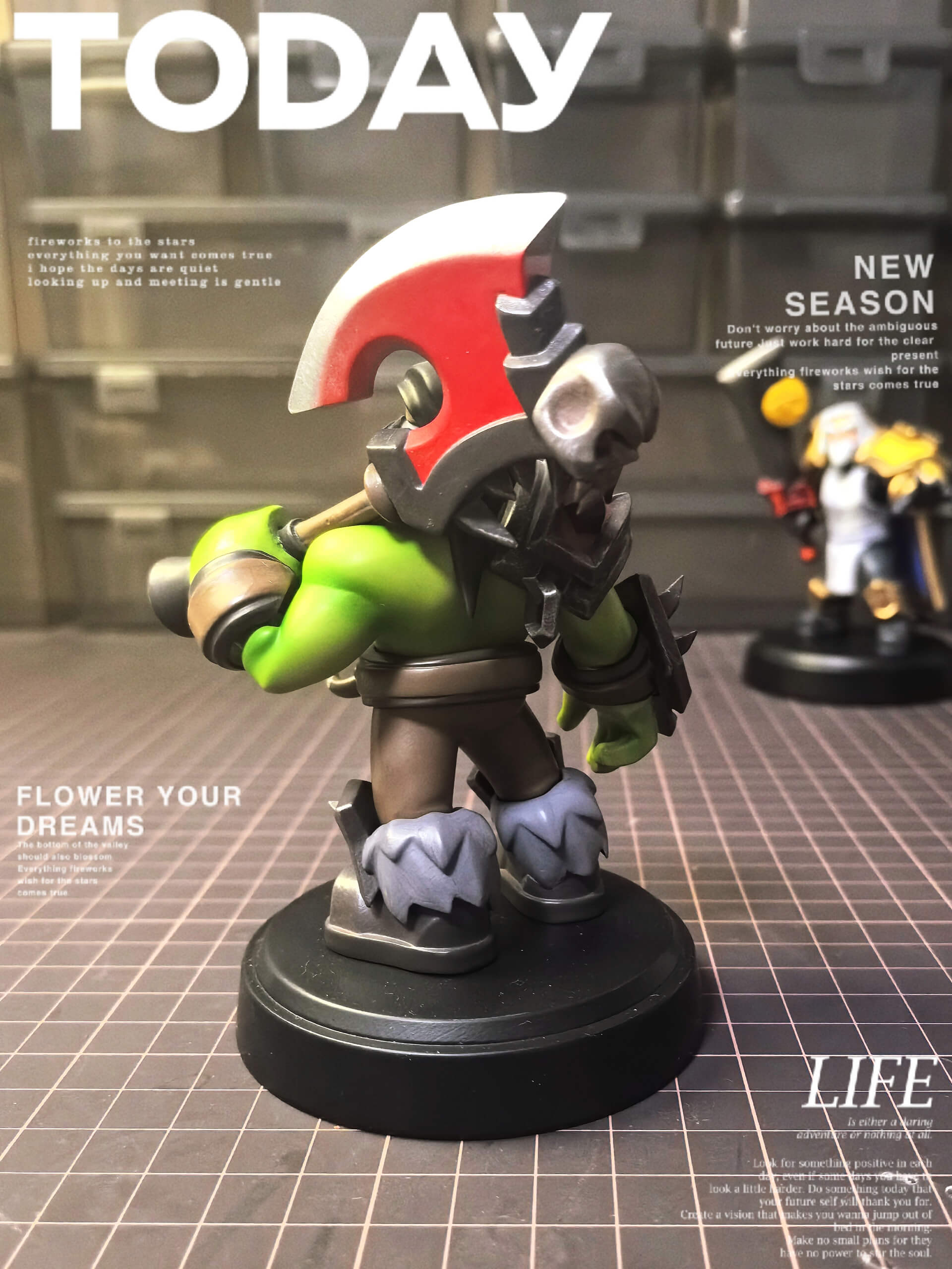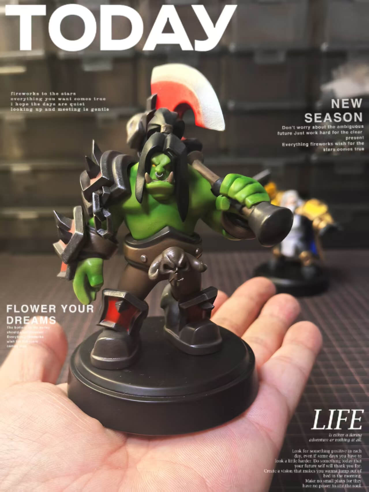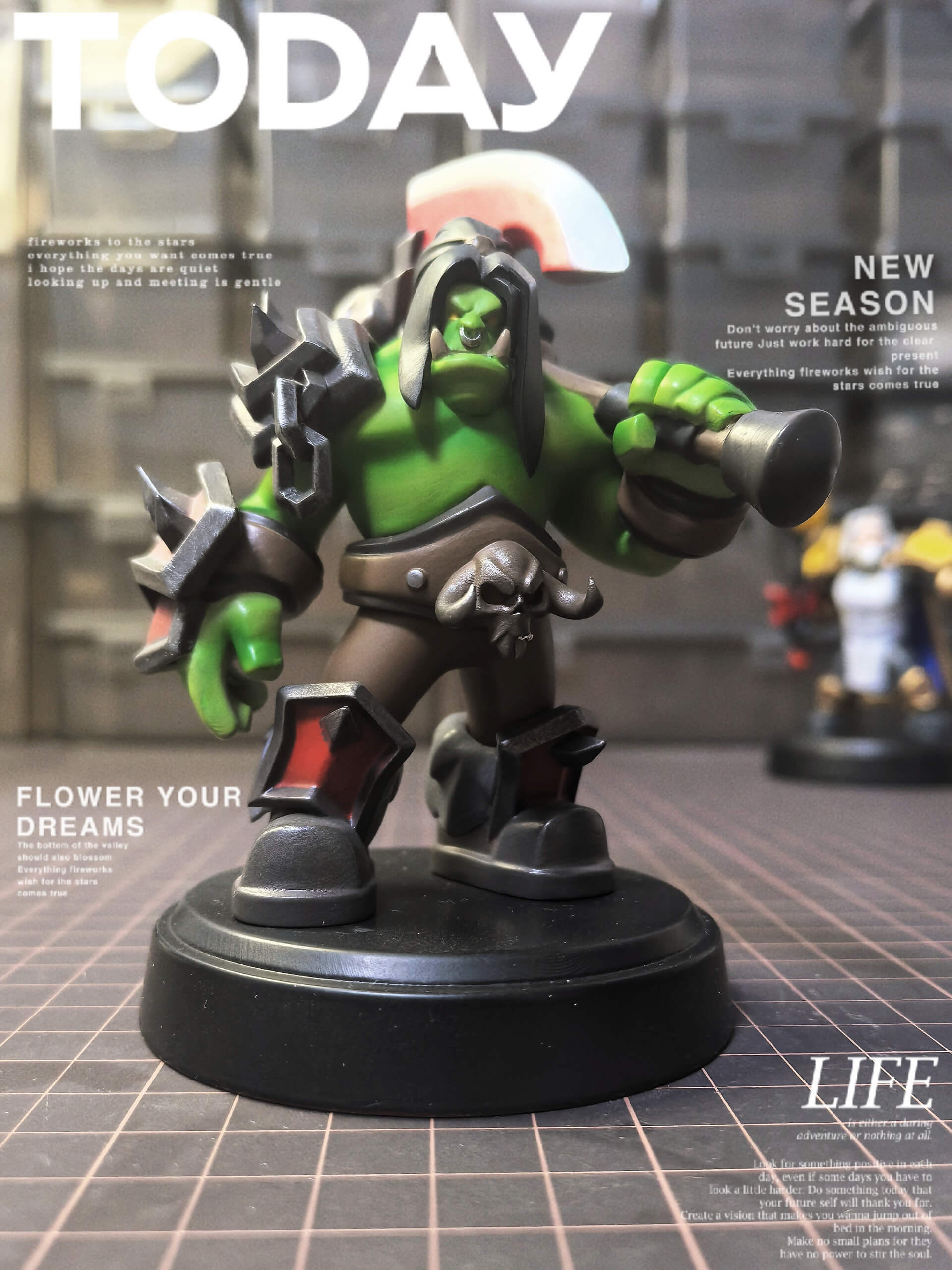 - Single fixed pose — Grommash mid-stride, Gorehowl raised and ready, conveying the full weight of an imminent charge