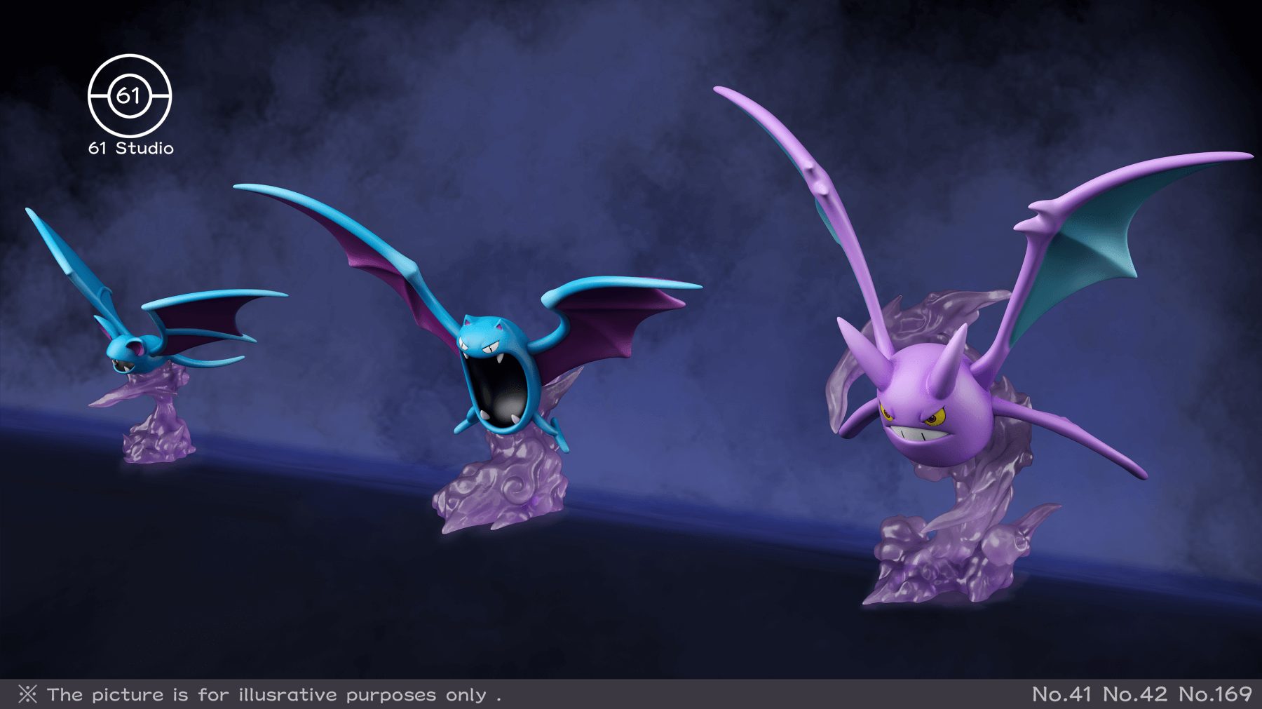 - Crobat is sculpted in a dynamic “Cross Poison” dive, slicing through a smoky plume with twin crimson slashes.